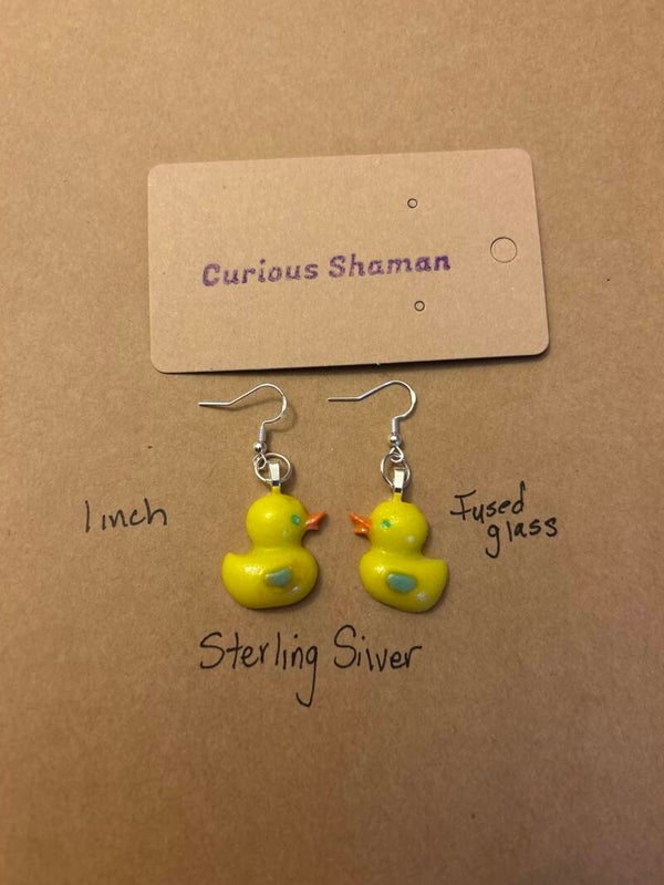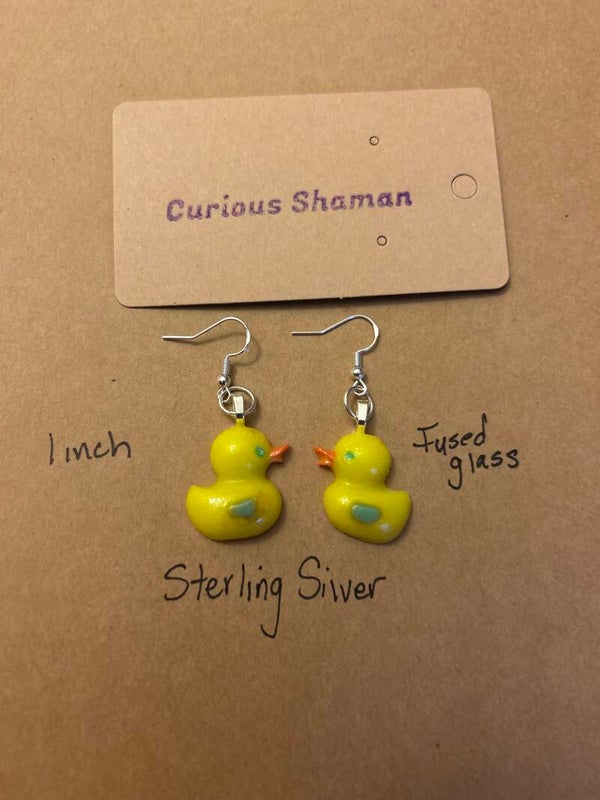 Lightweight glass earrings handmade with my own original design in Scarborough Maine. The earrings are made with sterling silver earwire and measure just under 2 inches.